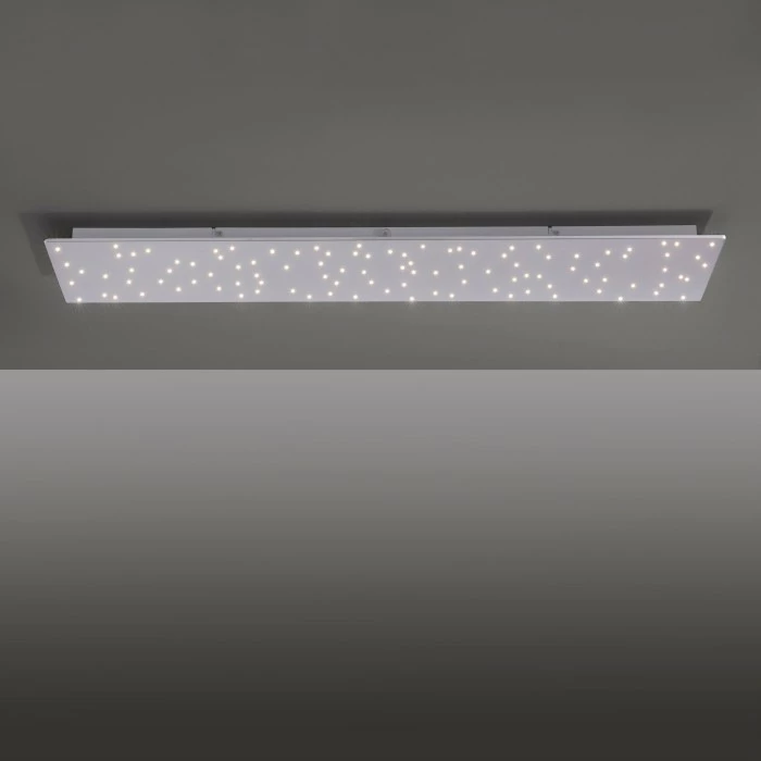 Die Leuchte hat eine Länge von 100 cm, eine Breite von 25 cm und eine Abhängung von 4,0 cm.